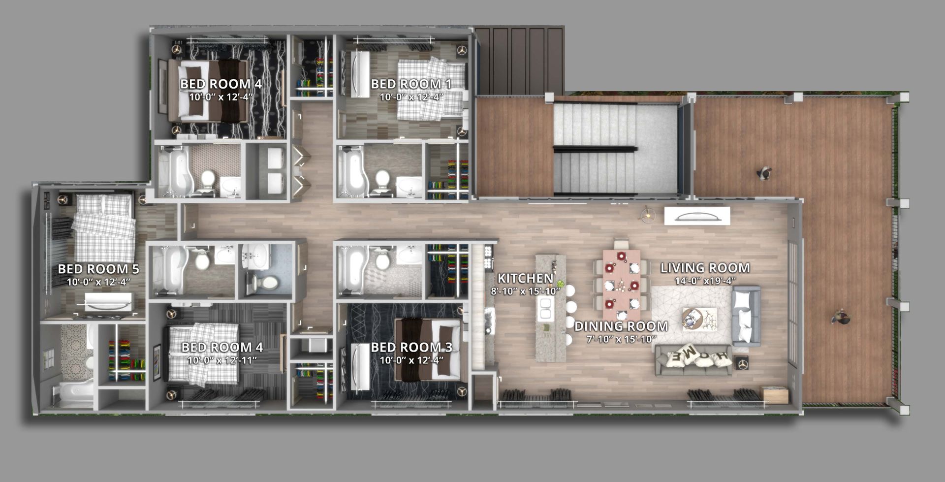 5 bedroom, 5.5 bathroom unit, all stainless steel appliances, granite counter tops, vinyl plank flooring throughout.