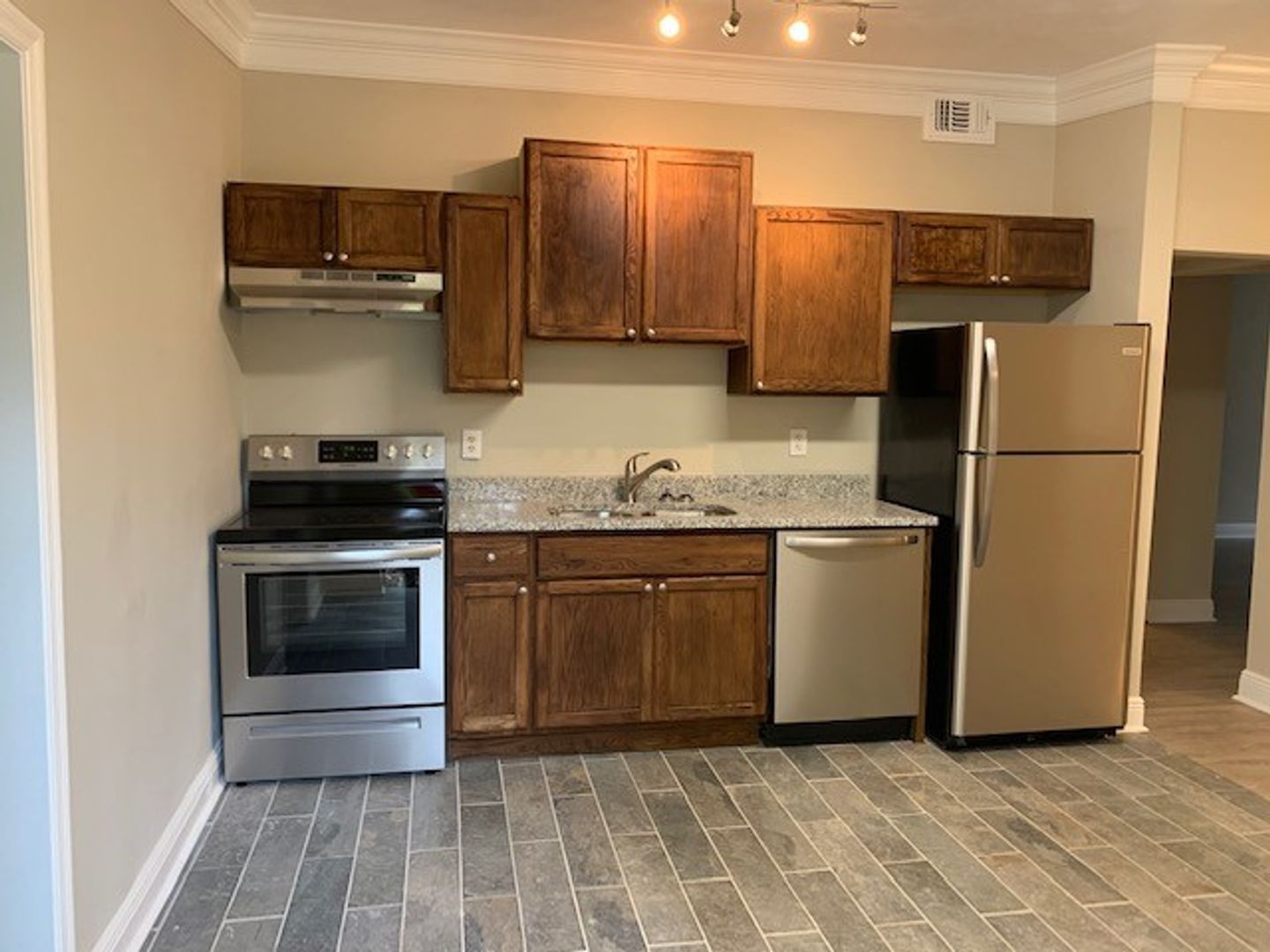 This 3 bedroom 3 bathroom house is located in Midtown. Kitchen has new stainless steel appliances. House has wood style flooring throughout plus an office/bonus room. Back yard is fully fenced!