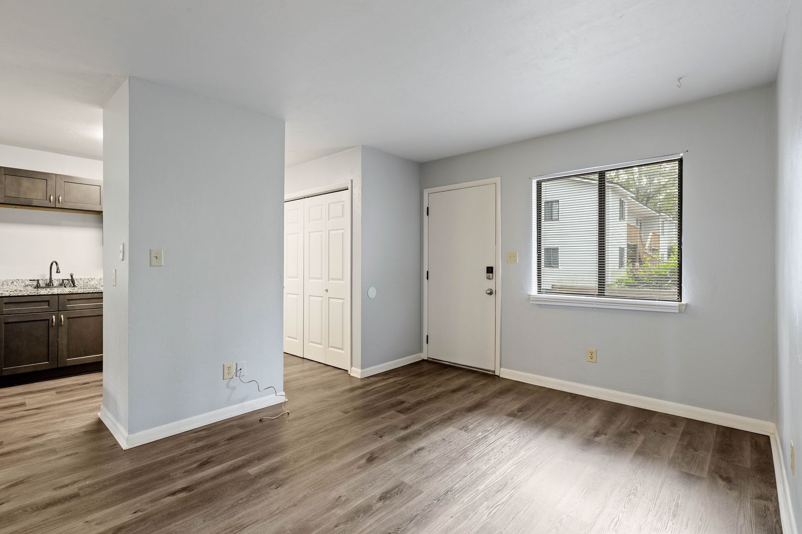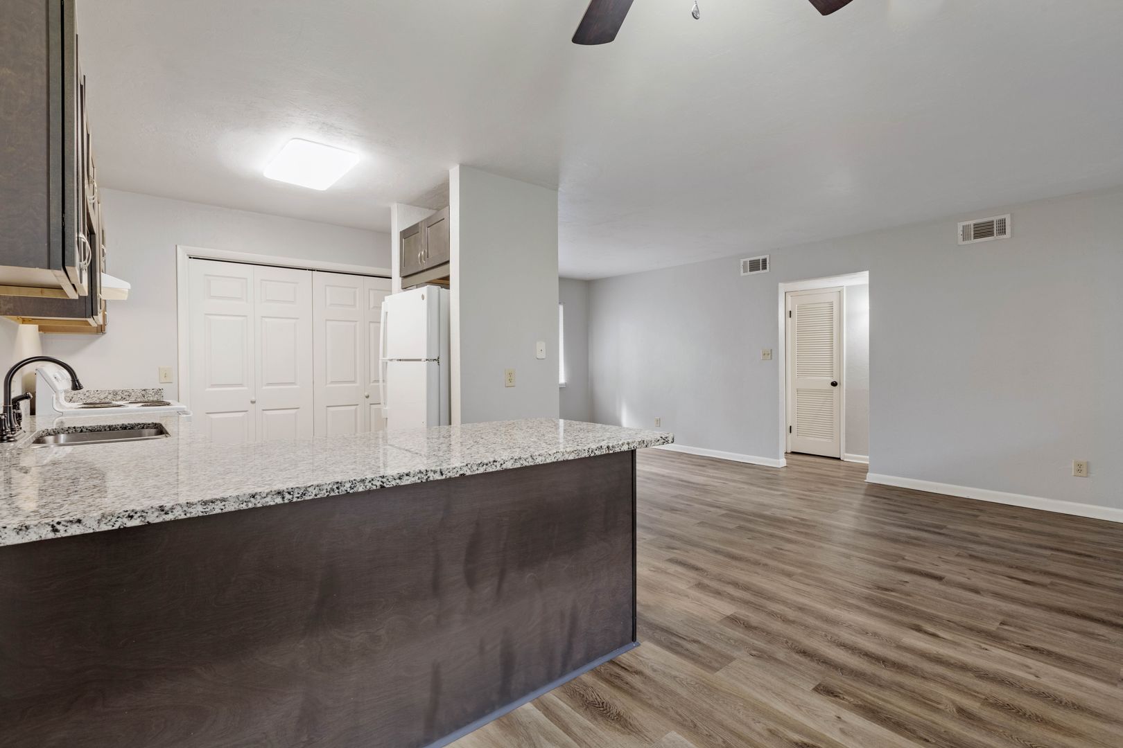 This unit has vinyl plank flooring and updated cabinetry